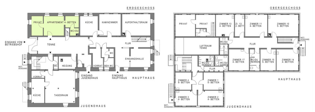 Kann separat oder zusammen mit dem Jugendhaus und ggf. mit dem Apartment gebucht werden.
